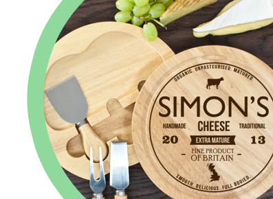Our range of beautiful personalised cheese boards include slate cheese board and wooden boards in a number of shapes including rectangular, circle, heart and squares all of which are engraved by us just as you want it.