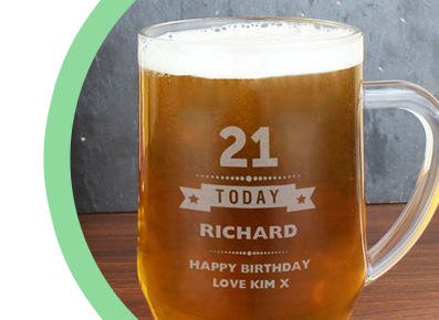 We also have a variety of tankards which can be made unique as well as the range of pint glasses so no matter the design you'll find one suitable. We also have an exclusive 2 and half pint glass which you can personalise with a message on, this unique gift makes for something very original and will be something they will use and keep hold of for many years to come.