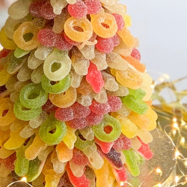 This yummy Christmas Tower is handmade and enitrely edible! A showstopping centrepiece to create a real wow factor around the Christmas dinner table; ideal for sharing with friends and family. Edible to the core, the centre of this tower is made from our secret recipe Belgian chocolate crispy crunch. Then one-by-one sour, fizzy sweets are stuck by hand to the centre using even more chocolate. So, once you've made your way through all the fizz, you can keep on munching through the core! Each tower can be personalised with a message, handwritten in Belgian milk chocolate (up to 25 characters). Stays fresh for up to 6 months if stored in original packaging.