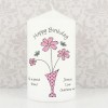 Personalise this Flower In Vase Candle with any occasion above the design up to 20 characters. You can also add a message to the left of the vase of 2 lines of up to 15 characters, and a slightly longer message on the right of the vase of up to 3 lines of 15 characters.