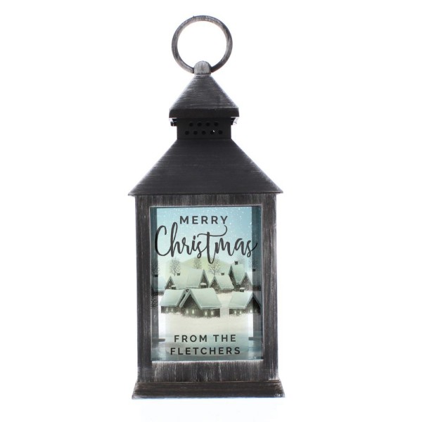 Personalised Town Christmas Rustic Black Lantern