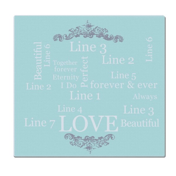 The words "LOVE", "I DO", "Beautiful", "forever & ever", "Always", "Together forever" and "Eternity" and "Perfect" are fixed. You can then personalise as listed below: