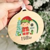 This Personalised Elf Round Wooden Decoration adds a personal touch to the Christmas tree.