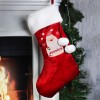 This red velvet stocking with soft plush white cuff features a hoop on the top to enable the stocking to be hung.