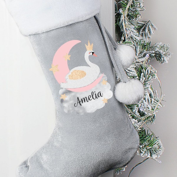 Personalised Swan Lake Luxury Silver Grey Stocking